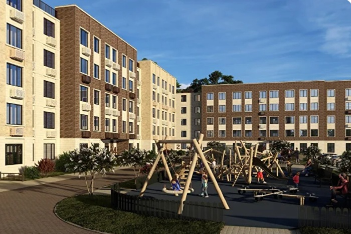 Жилой комплекс «Ступино» также от «Тройки Плюс» – строится в самом центре одноименного города. Это 15-этажно трехподъездное здание на 256 квартир, от одно– до трехкомнатных. Готовность заявлена на конец 2026 года, цены начинаются от 120000 рублей за кв. метр.