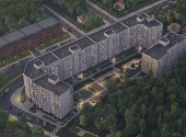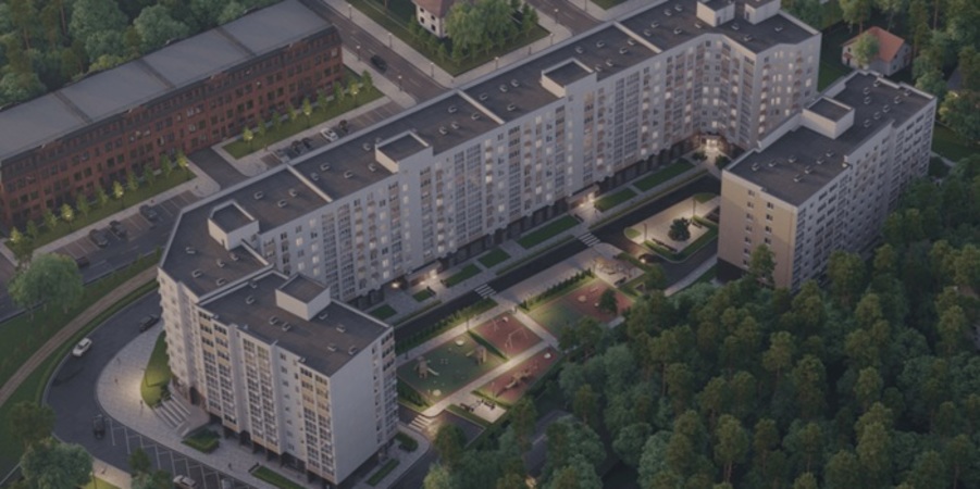На закрытой территории возводится три 9-этажных корпуса. Архитектура комплекса лаконична: фасады облицованы белыми, светло-серыми и графитовыми панелями, крышу украшают декоративные карнизы. Продуманная конфигурация домов позволяет сформировать уютный квартал с закрытым двором и доступной инфраструктурой.