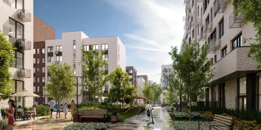Проектом предусмотрены 14 корпусов средней этажности – 6-9 этажей, а также муниципальная школа, два муниципальных детских сада и два наземных многоуровневых паркинга с кладовыми помещениями.