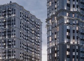 Архитектура жилого комплекса сочетает в себе современный и классический стиль. Светлый фасад украшают ритмичные французские балконы, эркеры и большое количество панорамного остекления. Корпуса имеют динамичный разноуровневый силуэт от 16 до 25 этажей, благодаря чему из окон открываются живописные виды на лесной массив и реку.