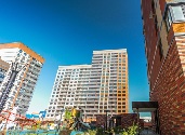 Новый комплекс - три монолитных корпуса высотой от 8 до 20 этажей. Переменная этажность зданий создает визуальное разнообразие, фасады облицованы кирпичом с яркими акцентными вставками и четкими геометрическими линиями.